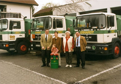 Jahre 1924 wurde von dem Sohn, Gustav Erhardt der erste LKW erworben und die Kohlehandlung in die Hauptstr. 45, in Müllheim verlegt. Seine 3 Töchter Gertrud, Verena und Heidi Erhardt übernahmen den Betrieb im